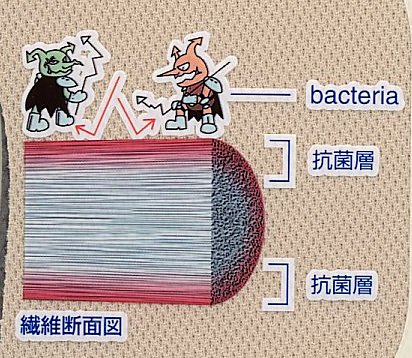 | バイオガードは抗菌剤を繊維表面から内部の深部まで染料の様に 浸透させて、固着していますので工業洗濯でもOKです。 |